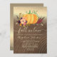 Elégante, aquarelle florale, rose vif et parties scintillant or citrouille orange Chute en Amour Douche nuptiale Invitation avec arrière - plan en bois rustique.