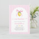A charming Italian-inspired baby shower invitation featuring soft pink stripes, a delicate bow-tied lemon, and romantic script typography.