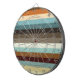 Ce design présente des rayures horizontales dans différentes couleurs vintages comme le marron, l'orange, le beige, le bleu, le noir, le gris et le blanc. Il évoque vraiment le style du milieu du 20ème siècle.
