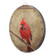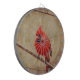 Un cardinal assis dans mon arbre Mimosa attend son tour à la mangeoire.