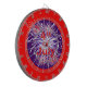 Une cible d'amusement 4 juillet couverte de feux d'artifice rouges et blancs, cercle bleu profond sur un arrière - plan rouge lumineux.