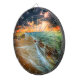 Ce tableau de bord personnalisé présente un tableau abstrait d'un coucher de soleil sur la côte.