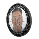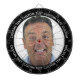 Custom Photo Dartboard template with personalized text and BLACK round photo framing surround (other color surrounds available in store). Your face on a dartboard. One click personalize upper and lower text plus replace image, or full customization via Edit Screen. Regulation size with metal frame and 6 brass darts (Stars and Stripes + Union Jack flights). A fun gift for a darts player.