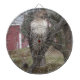 Buse à queue rousse. Un faucon de taille massive assis dans notre Crab Apple Tree ! La campagne à la recherche de granges rouges en arrière - plan. Photographie originale © TamiraZDesigns.
