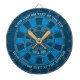 Icône de baseball avec deux chauves-souris et une balle sur un bouclier bleu. Arrière - plan bleu grognon. Trois zones de texte personnalisées.