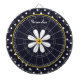 Un tableau de fléchettes avec un motif de fleurs girly rétro mod sur le dessus avec des marguerites blanches avec des centres jaunes contre un arrière - plan bleu marine, et un motif à pois bleu et blanc tendance sur le fond. Personnalisez en ajoutant votre nom. Un cadeau parfait pour une fille élégante.