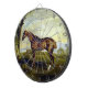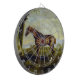 Ce dessin présente une peinture de l'artiste anglais George Stubbs (1724-1806), devenu célèbre pour ses représentations de chevaux. Il montre un élégant hippocampe de course avec une belle robe couleur châtaignier debout en profil. Son corps est fort et élégant. Le cheval est libre et libre dans un paysage de campagne à côté d'un vieux saule avec des algues qui poussent dessus et qui est entouré de champs verts d'herbe. Les oreilles du cheval sont de retour, suggérant que l'animal est alerte et à l'écoute de commandes ou de sons dans l'environnement. Un hippocampe de course comme celui-ci pourrait galoper jusqu'à 50 milles à l'heure.