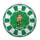 Gnome chanceux avec confettis d'or et coeur sur Cible de flechettes vert émeraude et blanc. Le texte peut être personnalisé.