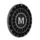 Tableau de bord noir moderne avec simple médaillon monogramme avec typographie de bloc classique initiale et nom en blanc. Personnalisez avec monogramme initial; utilisez le menu personnaliser pour changer la couleur ou la typographie arrière - plan.