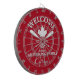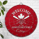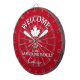 Super fun "bienvenue au chalet du lac" customisé dart board avec un design patriotique canadien de feuille d'érable avec des avirons croisés et une ancre. Changez le nom, l'année et le nom de votre escapade de vacances (maison de plage, cottage, maison d'été, etc.) pour en faire un cadeau merveilleusement unique.
