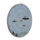 Une aquarelle de trois OVNI soucoucheurs au-dessus des montagnes orne ce joli tableau de fléchettes !