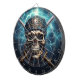 Cette oeuvre d'art saisissante présente un crâne de pirate menaçant, ses yeux creux qui se projettent avec une intensité inquiétante. Derrière le crâne se trouvent deux épées brillantes, leurs lames aiguisées et portées au combat, symbolisant l'esprit téméraire de la haute mer. Dans l'arrière - plan, des éclairs déchiquetés se fendent à travers un ciel orageux, ajoutant un flair dramatique de chaos et de pouvoir. La composition dégage une aura de rébellion et de danger, capturant l'essence indomptée de la tradition pirate.