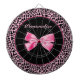 Un empreinte de léopard noir et rose tendance et élégant avec un joli ruban rose chaud enveloppé comme un cadeau. Personnalisez cette cible chic en ajoutant votre nom. La mode féminine design parfaite pour faire sortir la fashionista dans n'importe quelle fille ado !