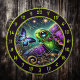 Créez une ambiance céleste dans votre pavillon de pêche ou grotte avec cette oeuvre d'art à couper le souffle. Une tortue à la coquille violette et verte brillante est associée à un papillon dont les ailes scintillantes éclairent la scène. Des motifs floraux dorés et des étoiles scintillantes complètent l'atmosphère magique. Idéal pour ajouter une touche de fantaisie et d'élégance aux espaces rustiques, il s'intègre parfaitement à une décoration d'inspiration nature
