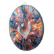 Une représentation vibrante et surréaliste se concentre sur un oeil très détaillé entouré d'une explosion d'éléments abstraits et colorés. La composition se compose d'un mélange de plumes, de formes organiques et de éclats de couleurs rayonnant vers l'extérieur, créant une scène dynamique et captivante. Photoshop Art numérique CS5