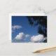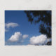J'aimerais que vous soyez ici. Ciel bleu et nuages blancs gonflés encadrés par un arbre sur une carte postale