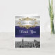 Ensemble de papeterie avec vue sur la skyline de NYC : fond dégradé blanc, ruban bleu marine - Carte de Remerciement