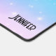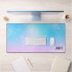 Tapis de bureau avec un arrière - plan fantaisiste. Couleur pastel rose et bleu dégradé. De petites étoiles blanches parsèment le paysage. Design fantasque et magique.