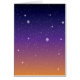 Ce magnifique design dépeint des étoiles de toutes tailles sur un ciel nocturne brillamment coloré, brillant par les couleurs qui s'entrelacent au coucher du soleil. L'arrière - plan s'évanouit de très sombre en haut à un violet profond au milieu et enfin une orange dorée en bas. Ce design de ciel étoilé est parfait en l'état, mais vous pouvez également ajouter votre propre texte ou images pour créer votre propre création personnalisée.