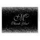 Une carte de Merci moderne et classe avec un parfum de parties scintillant argent sur un arrière - plan noir pur. Il s'agit d'une suite mariage correspondante qui peut être entièrement personnalisée.