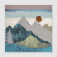 Paysage moderne avec des couleurs uniques et des motifs montrant un paysage de montagne avec un horizon rayé.