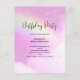 Invitation carte postale anniversaire avec un bel arrière - plan. Un ciel rose pastel avec des nuages moelleux et un arc-en-ciel couleur citron. Design magique et fantaisiste.