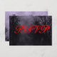 Réponse personnalisée modèle de carte RSVP avec des lettres gronces sur un ciel éffrayant d'Halloween avec des arbres brumeux le long d'une route obscurcie, des corbeaux gothiques et une pleine lune nuageuse dans un brouillard violet. Customisez-le pour modifier les polices, le dimensionnement et plus encore, même enregistrer votre conception pour plus tard.