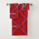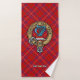 badge de crête Rose clan entouré d'une sangle et boucle sur l'arrière - plan tartan. Texte personnalisé sur chaque serviette.