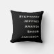 Ce carré simple et minimaliste jette l'oreiller, avec la place pour cinq noms, est un cadeau merveilleux pour une nouvelle maison ou une fête de ménage - ou pour vous-même, bien sûr ! Grand cadeau de conservation pour les nouveaux parents ou grands-parents. Il est noir et blanc, mais facile à changer de couleurs. Le dos est noir. Tous droits réservés © 2024 Alan & Marcia Socolik