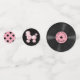 Fun 50ème anniversaire confetti fait dans un thème des années 50, avec des graphiques d'un disque vinyle LP, un caniche rose et un motif pois rose et noir pois pois. Personnalisez le texte en fonction de vos besoins.