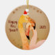 Belle décoration de Nouvel An avec des flamants, chapeau de Père Noël et flocons de neige. Facile à ajouter du texte personnalisé et année.