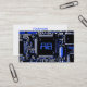 Conception cool avec un gros plan d'une carte de circuits imprimés en bleu et noir. Modèle de carte de visite avec un design personnalisable pour vous permettre de personnaliser avec votre propre texte, photos et idées. Image créée à l'aide d'une photographie originale et de techniques numériques.