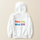 Ce t-shirt est décoré de l'emblématique phrase "Wax On, Wax Off." dans une police multicolore et audacieuse. Les mots sont empilés, et chacun est une couleur vibrante différente, donnant au design un look ludique et rétro. Le design est simple et met l'accent sur l'humour et la culture pop signification de la célèbre instruction du film classique d'arts martiaux.