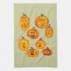 Ces visages citrouilles ont été inspirés par le tableau "Cri" d'Edvard Munch, parfait pour l'halloween, oeuvre de Kristie Hubler, sur cette serviette de cuisine