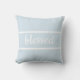 Cette citation coussin en bleu et blanc avec un design de texte béni qui peut être customisé pour un décor maison unique.