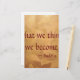 Citation de Bouddha ; Ce que nous pensons devenir, à la belle main brossé cuivre arrière - plan métallique. Idéal pour célébrer les fêtes bouddhistes comme Vesak (l'anniversaire de Bouddha, aussi connu sous le nom de "Hanamatsuri", il est célébré le 8 avril), Magha Puja (une importante fête religieuse célébrée par les bouddhistes en Thaïlande, au Cambodge et au Laos), Asalha Puja Day, Uposatha, Cérémonie de Kathina, Abhidhamma Day, Songkran, Songkran, Loy rathong, Madhu Purnima, The Plown Festival, The Elephant Festival, The Festival of the Tooth, Ulambana or Ancestor Day, Avalokitesvara's Birthday : Ce festival célèbre l'idéal Bodhisattva. Le jour de la pleine lune en mars. Il représente la perfection de la compassion dans les traditions Mahayana du Tibet et de la Chine. Bodhi Day : Fête qui commémore le jour où le Bouddha historique a connu l'illumination.