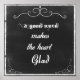 Cadre de tableau avec la citation originale, un bon mot rend le coeur heureux. Message spirituel positif simple.