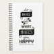 Planificateur avec une citation inspirante : 'Faites plus de ce qui vous rend heureux'. Pour vous aider à vous souvenir de profiter de la vie tout en planifiant.