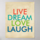 Cette affiche de citation inspirante a un texte coloré et audacieux en direct rêve l'amour rire sur le dessin arrière - plan écossais en détresse pour décoration murale à la maison ou au bureau.