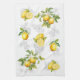 Jolie serviette de cuisine jaune vif aux citrons et arrière - plan de dessins de fruits gris clair. Nouveau design. Voir la tasse de café correspondante : https://www.zazzle.com/elegant_mediterranean_lemon_two_tone_coffee_mug-256811545671298862