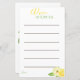 Cartes de conseil baby showers modernes et amusantes. >> Customisez le texte, la couleur de police et la police. >> Cliquez sur mon logo pour voir la collection d'articles en Baby shower jaune citron. Contactez-moi pour toute question.