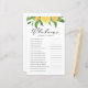 Qui connaît le mieux la mère ? Ajoutez cette carte de jeu de baby shower amusante et ludique à votre événement. Il est composé d'aquarelle citron, d'oranges, de verdure et d'haleine de bébé. Personnalisez ce jeu de baby shower d'agrumes en ajoutant vos propres questions. Ce jeu de baby shower au citron est parfait pour les baby showers d'été.