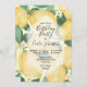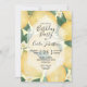 Des citrons élégants et de la verdure agrémentés de fleurs d'agrumes blancs sur un arrière - plan jaune citron pâle, personnalisent ces invitations d'anniversaire pour votre fête. Pour les papiers plus épais, considérez le papier mat. CORRESPONDRE des articles dans notre magasin.