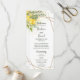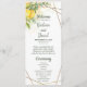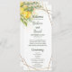 Programme de mariage des citrons Eucalyptus Fleurs Jaunes. Le style romantique avec citrons aquarelles, fleurs jaunes et eucalyptus est parfait pour un mariage d'été rustique. Le cadre géométrique en fausse feuille d'or apporte une touche moderne. L'aquarelle complète la composition et lui confère un charme particulier.