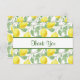 Un carte de remerciements avec un message à l'arrière. Conçu avec des citrons jaunes et des feuilles verts, dans un motif extensible.