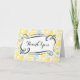 Une carte de remerciement de mariage (ou d'autres événements / situations) fraîche et fruitée. Un cadre fantaisiste et fantaisiste sur le devant contient les mots merci. L'intérieur comporte un message personnalisé que vous pouvez modifier, ainsi qu'un espace pour saisir votre (vos) nom(s). Conçu avec un motif charmant et mignon composé de citrons jaunes et de fleurs bleu pastel dans un style illustré dessiné à la main. Parfait pour les barbecues en plein air ou les mariages et événements de style décontracté.