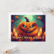 Un citrouille orange au visage éffrayant au milieu de nombreuses bougies en feu. Les bougies entourent le citrouille et projettent une lumière déplaisante et scintillante qui souligne les caractéristiques sculptées du visage citrouille. L'environnement est sombre et l'atmosphère est sinistre, ce qui convient à Halloween.