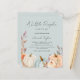 Cette petite invitation au baby shower floral automne citrouille est à la hauteur d'un baby shower élégant. Le design présente de beaux citrouilles d'aquarelle en blanc, bleu et orange avec des fleurs de boho en terre cuite et ivoire avec de la verdure sur un arrière - plan bleu. Une police de script élégante est la touche finale parfaite. Personnalisez avec tous les détails pour votre baby shower.