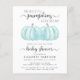 Une invitation à la douche pour bébés jumeaux, mignonne et économique, avec "Two Sweet Little Citrouilles Are On Their Way", écrite dans un mélange de typographie moderne gris doux et d'écriture stylée, et deux aquarelles citrouilles bleu pastel. Vous pouvez personnaliser le nom de la mère et les détails de la douche dans une simple typographie grise.