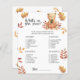 Célébrez avec cette soirée baby shower à thème d'ours en peluche! Aquarelle mignon ours en peluche avec un citrouille d'automne dans ses pattes est assis sur le feuillage d'automne. Au verso de la carte se trouvent les feuilles d'automne. Éléments correspondants disponibles.